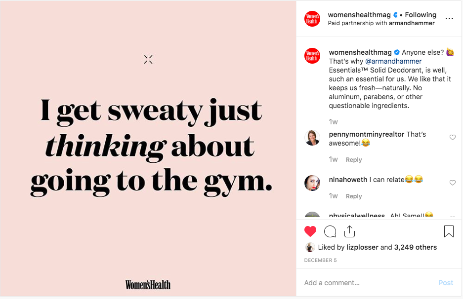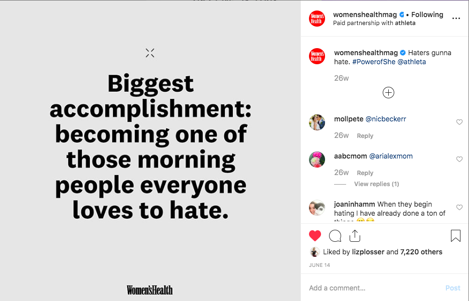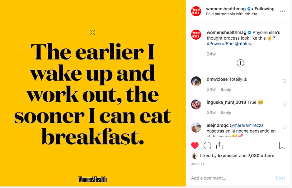 Here are a few examples of ways I’ve helped brands bring their messaging to Women’s Health’s 2 million Instagram followers. In addition to on-grid posts, I’ve also ideated and executed Instagram stories, quizzes, and more.